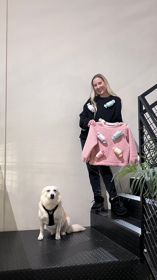 IšpardavimasRožinis vaikiškas džemperis - Saldainiai